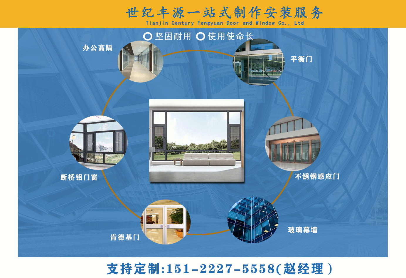 天津斷橋鋁門窗,天津玻璃幕墻,天津平衡門,天津肯德基門,天津不銹鋼感應(yīng)門,天津百葉窗,天津辦公高隔,天津制作安裝-天津世紀豐源門窗有限公司